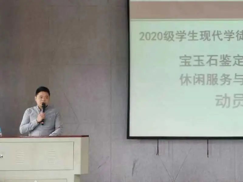 为加强员工对现代学徒制、顶岗实习的认识和了解,引导员工做好顶岗实习前的各项准备工作,推动现代学徒制和后期顶岗实习工作的顺利开展。伟德官方网站于6月16日在红山讲堂召开宝玉石鉴定与加工及休闲服务与管理两个专业的现代学徒制及顶岗实习动员大会。会议由吕明老师主持,伟德官方网站经理陈畅、党总支书记张颖、副经理杨家娣、党总支副书记张军红、就业与校企合作处陆祥老师、各班指导老师、班主任、辅导员、2020级宝玉石鉴定与加工、休闲服务与管理专业全体同学参加动员大会。